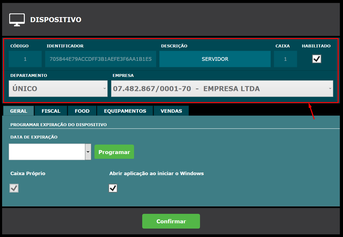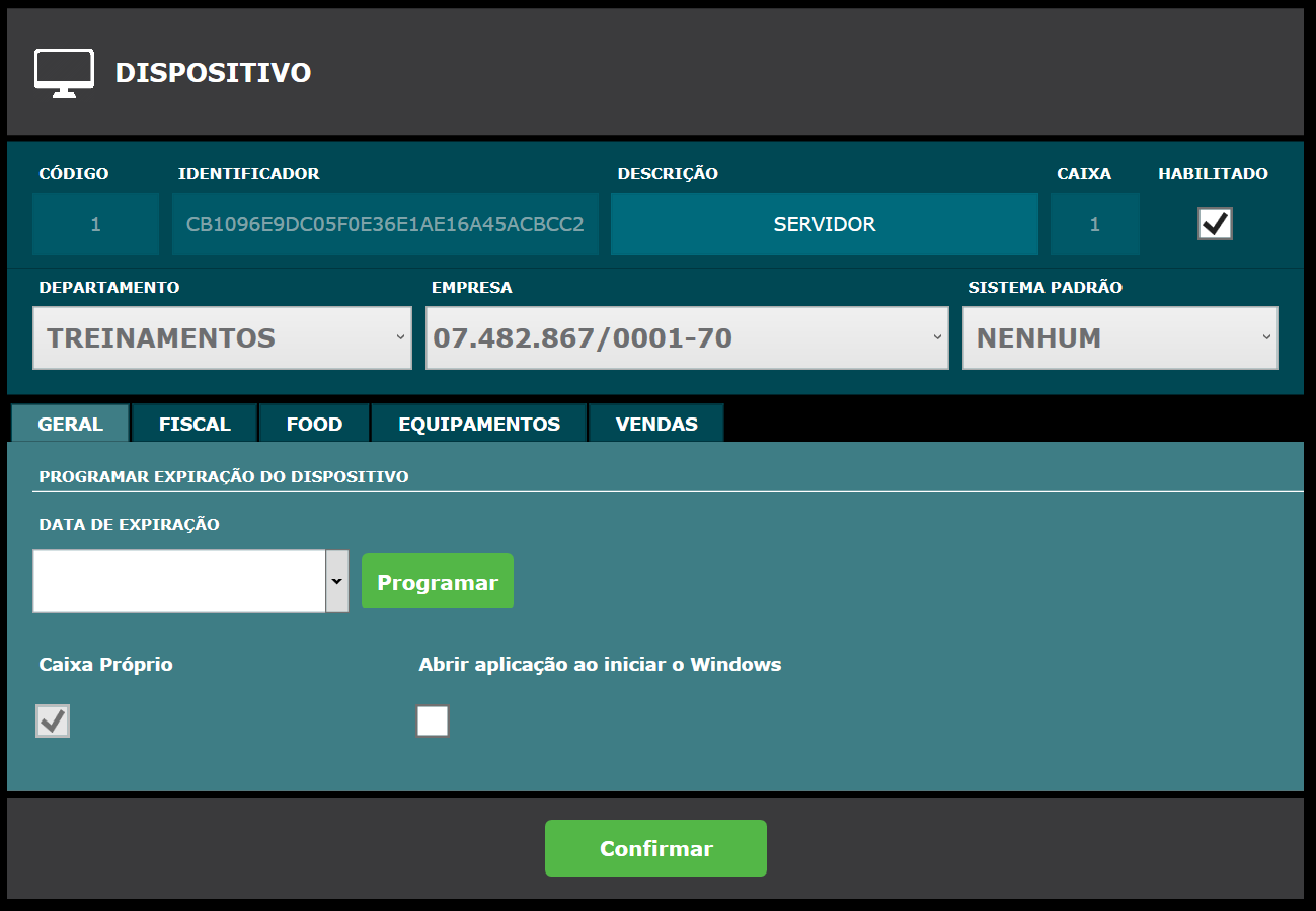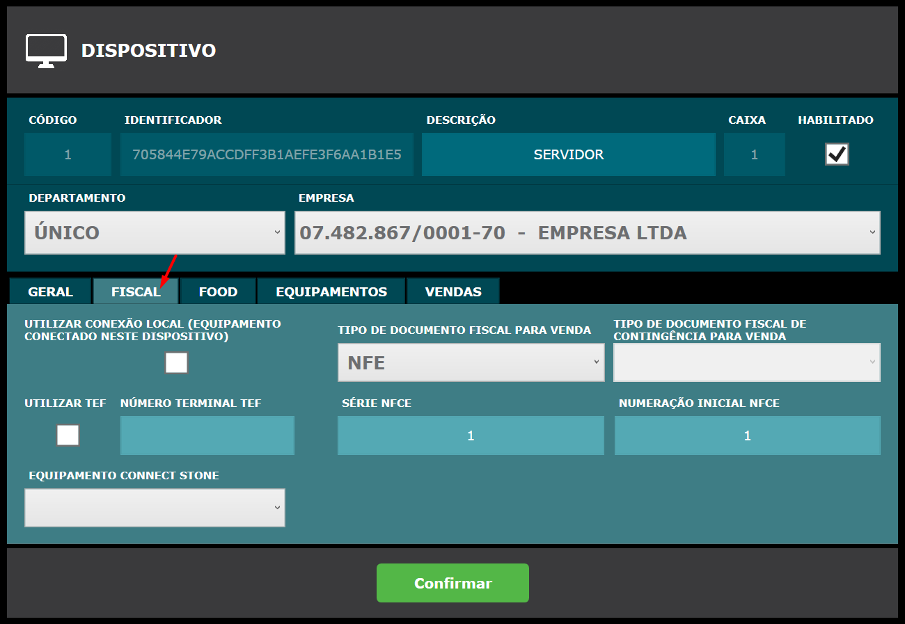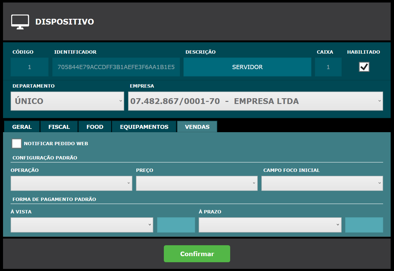 Caixa: Esse campo é importante, pois, se dois dispositivos tiverem o mesmo número de caixa, as vendas de ambos serão contabilizados no mesmo caixa. Se quiser o controle separado, deixe cada dispositivo com um número de caixa diferente.