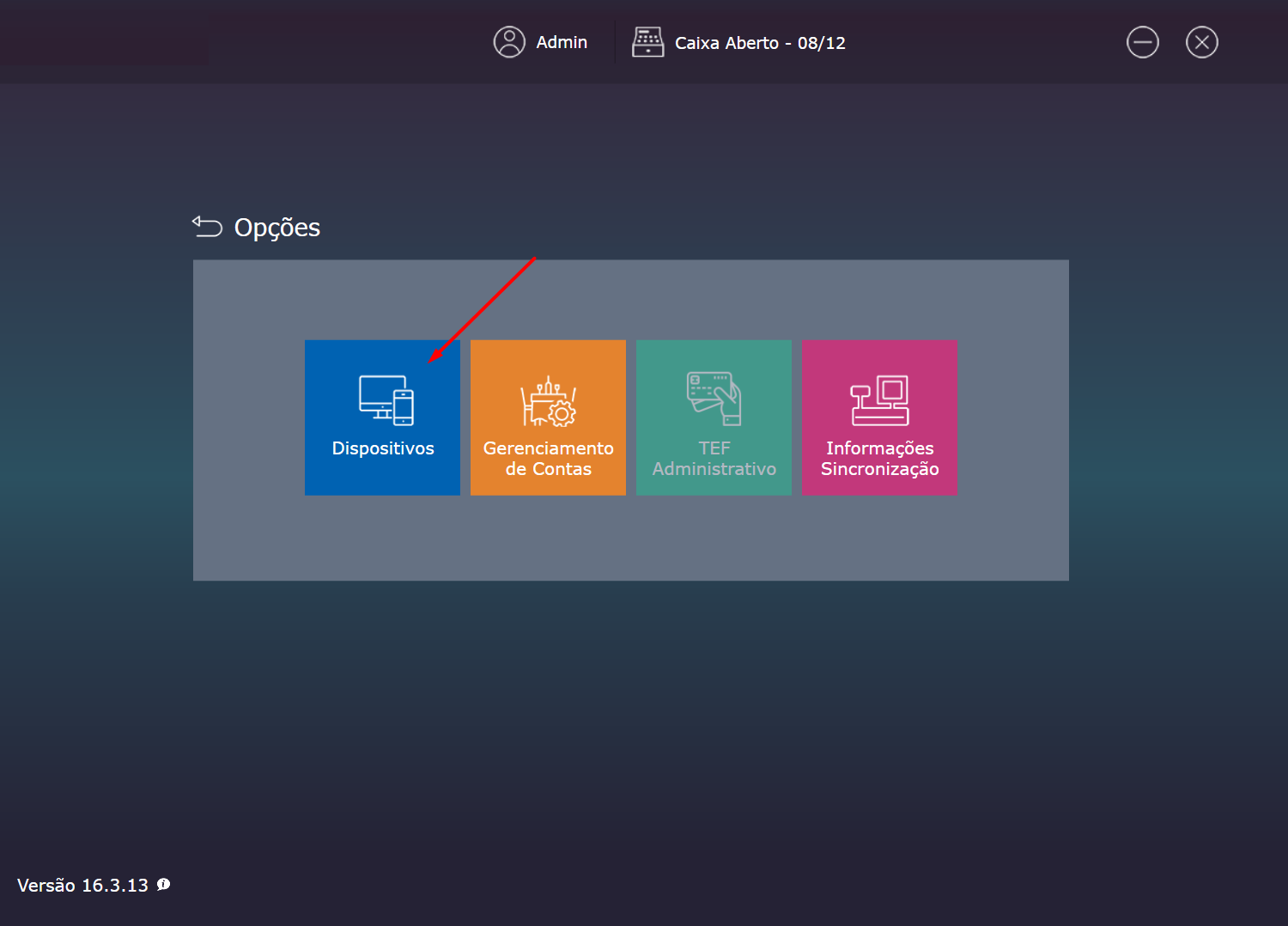 • Acesse Frente de Caixa > Opções > Dispositivo.