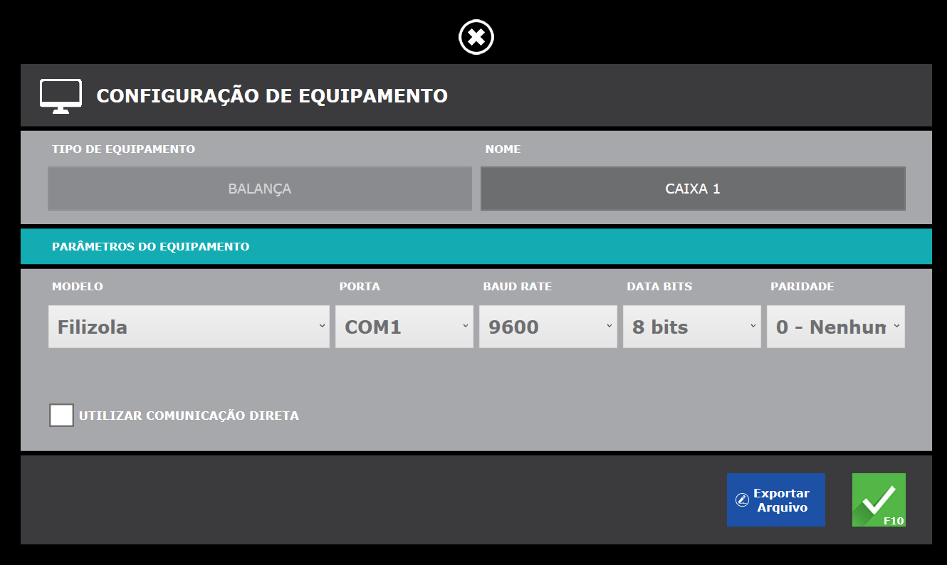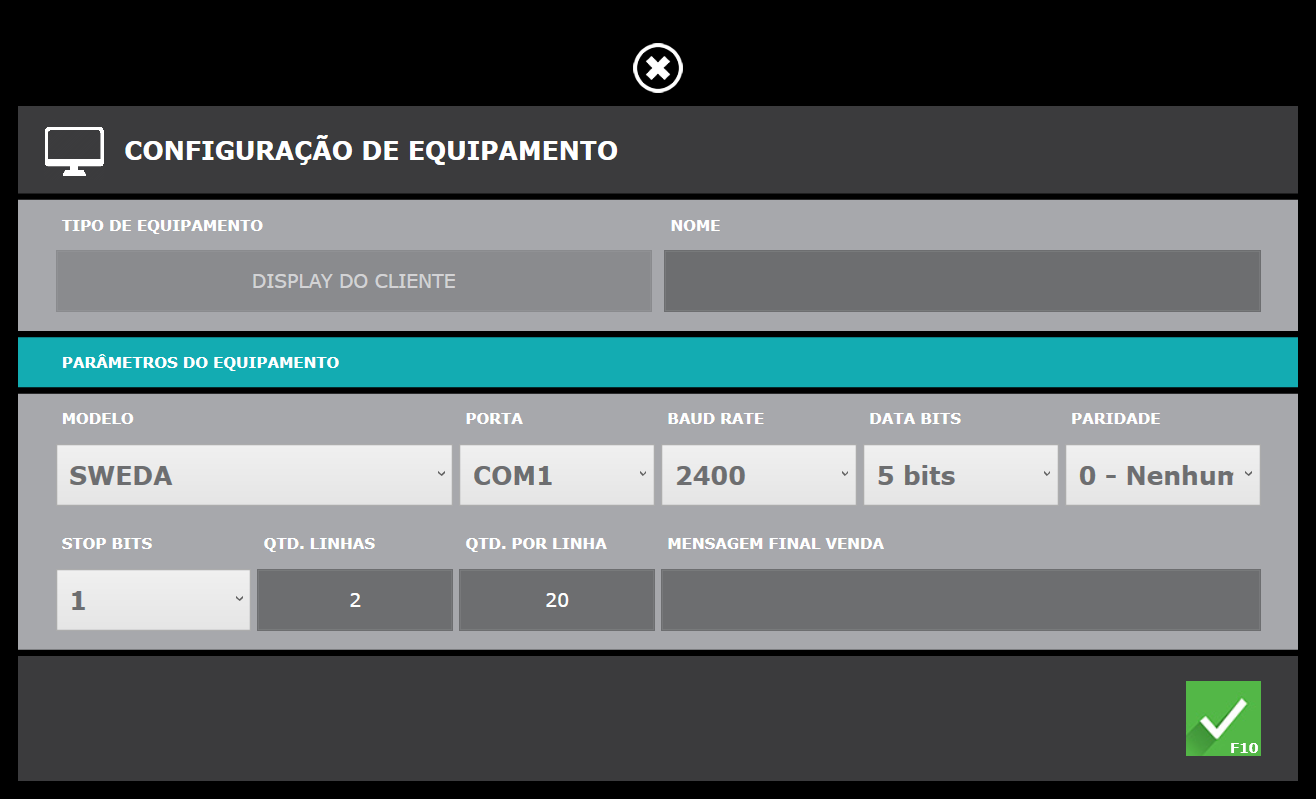 Se o equipamento fiscal for usado pela rede (TCP/IP) ou não houver equipamento conectado fisicamente, deixe desmarcado.