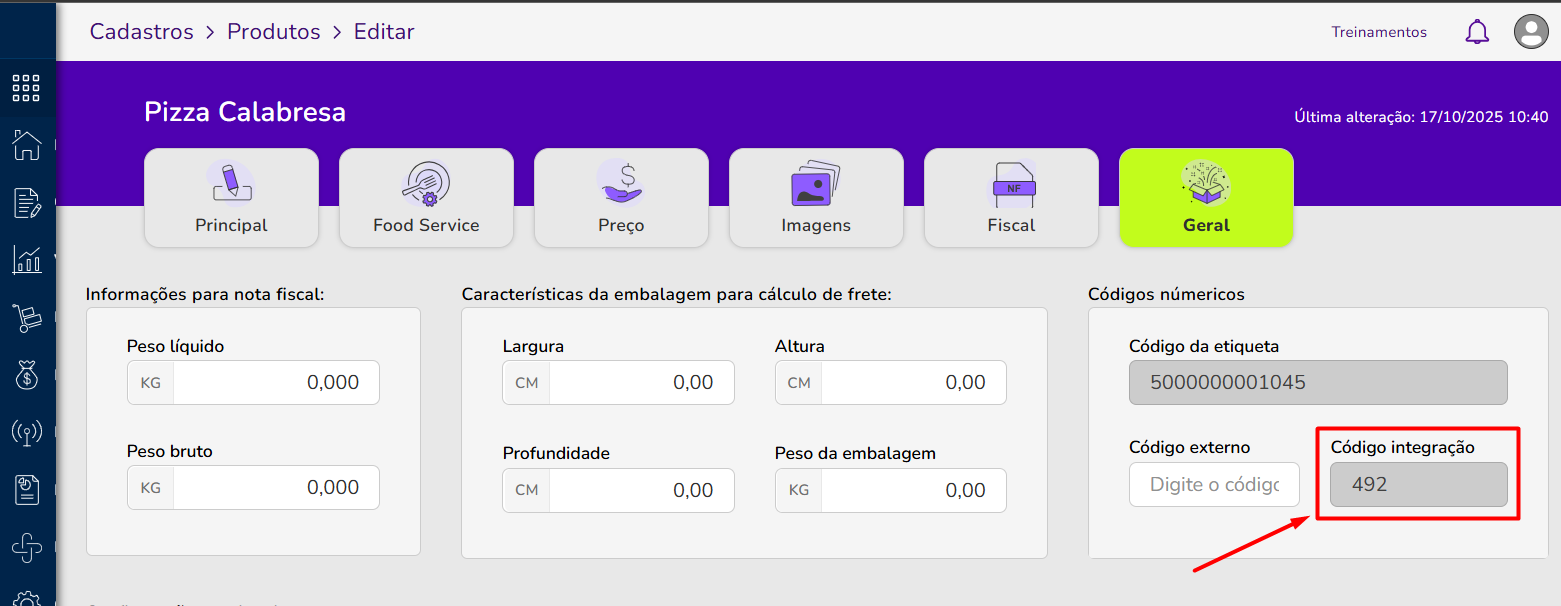 Para preencher, informe o Código de Integração do produto.