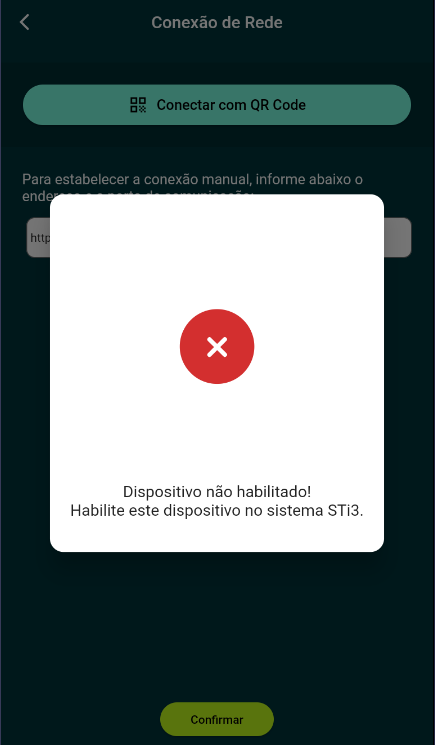 Veja o que fazer quando é mostrada a mensagem "Dispositivo são habilitado" ao tentar conectar o Chef Mobile.