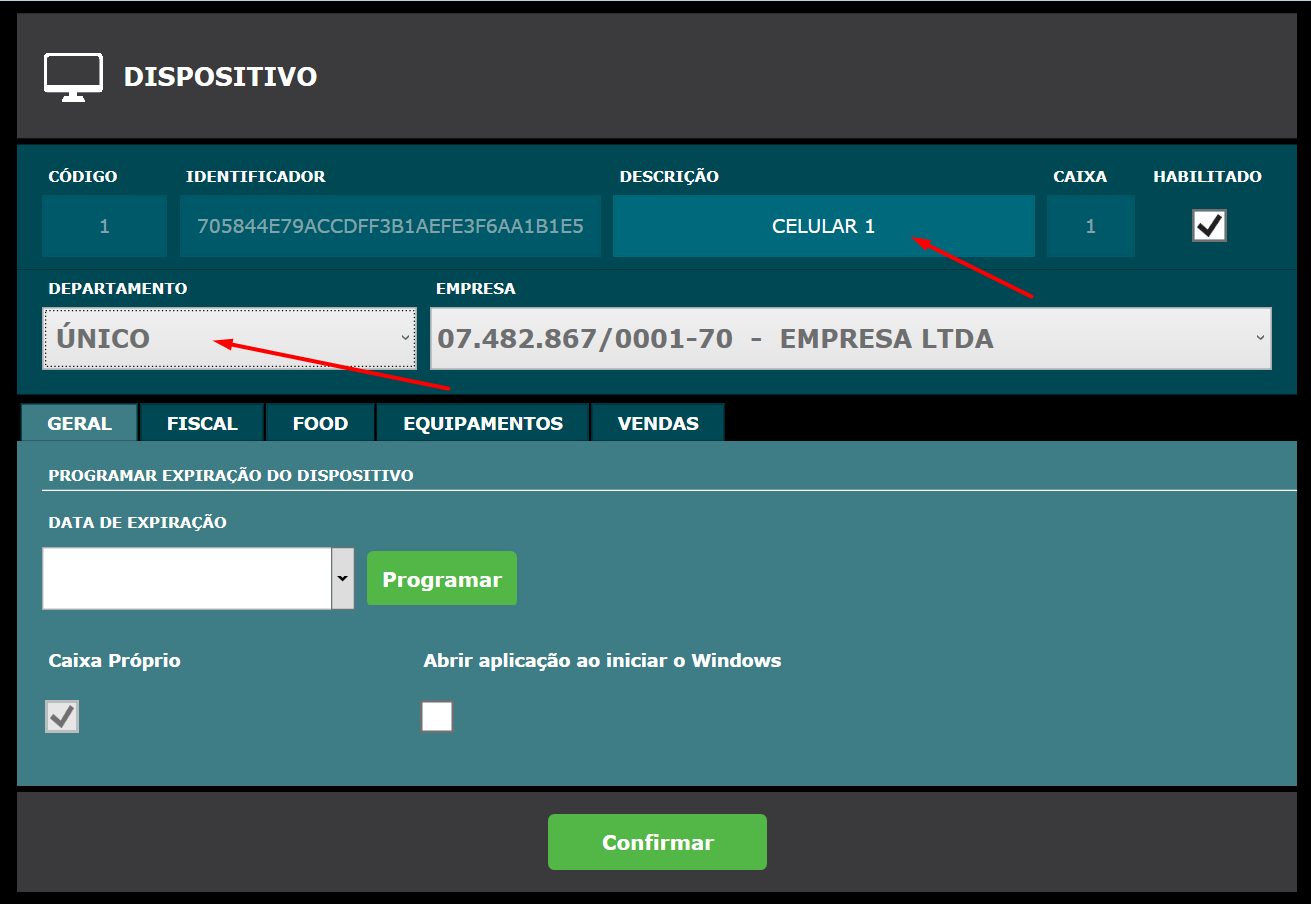 • Selecione o mesmo departamento selecionado no dispositivo responsável.