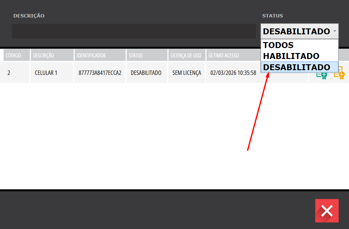 • Selecione o novo celular/maquininha na listagem.