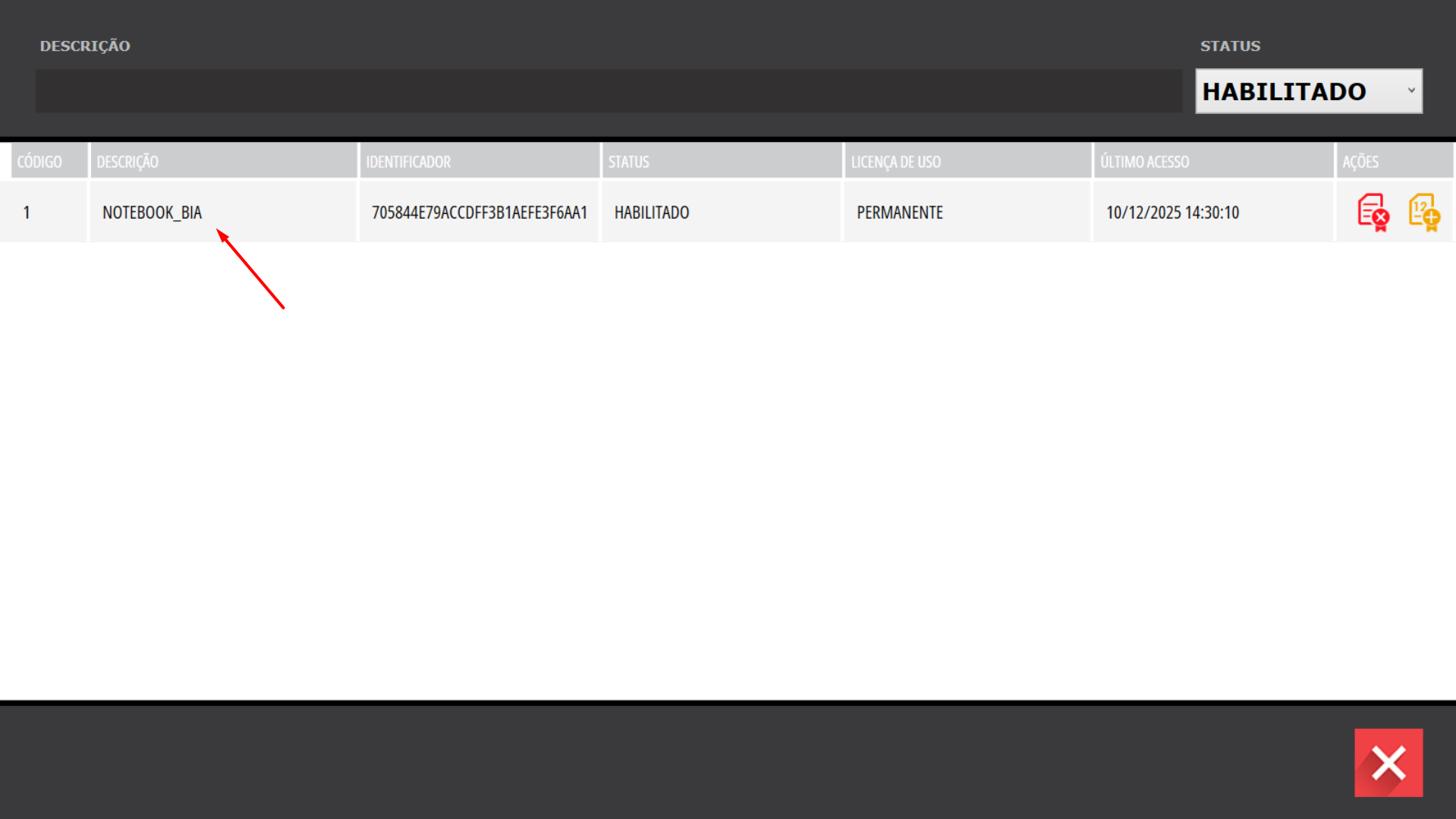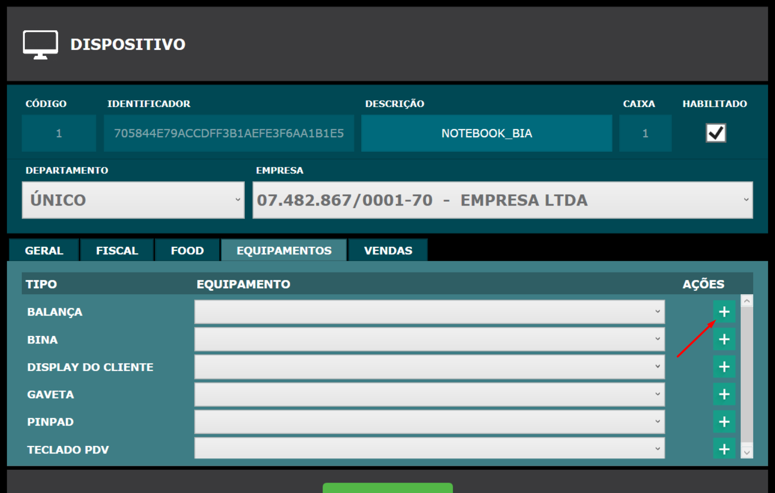 6. Clique em Confirmar e salve o cadastro do dispositivo