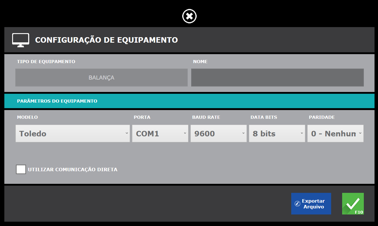Acesse o Frente de Caixa e informe os mesmos protocolos da balança para que haja comunicação: