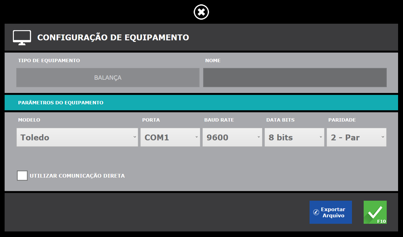 Acesse o Frente de Caixa e informe os mesmos protocolos da balança para que haja comunicação: