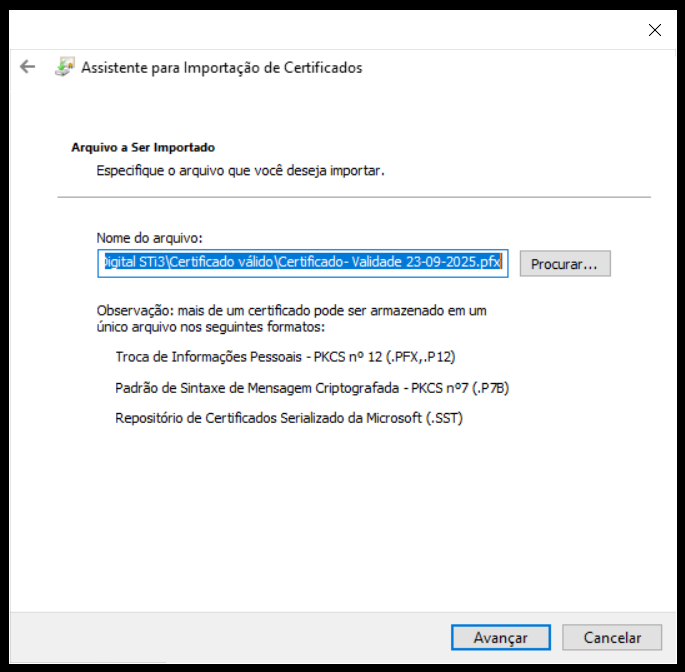 1. Localizar o Arquivo de Certificado: Localize o arquivo digital do certificado, que pode ter a extensão .pfx ou .p12.